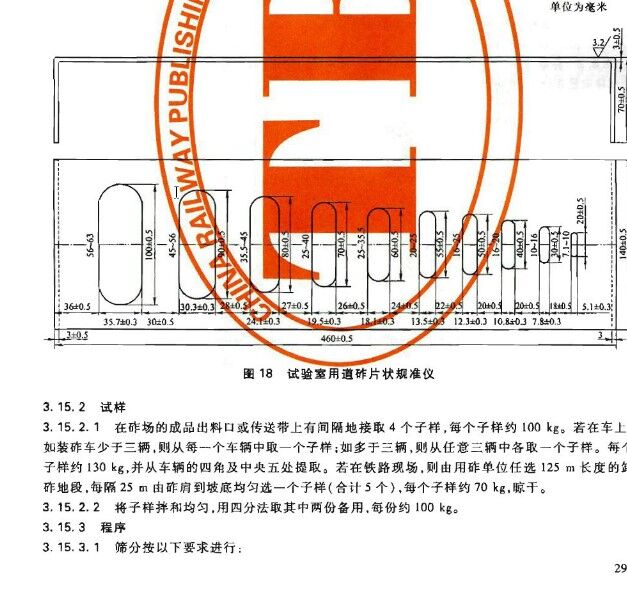 新標(biāo)準(zhǔn)鐵路道渣針片狀 一級(jí)道渣針片狀 鐵路道砟現(xiàn)場(chǎng)針片狀規(guī)準(zhǔn)儀